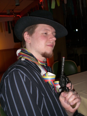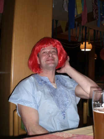 Für alle bereits von der Reha schon wieder zu Hause seienden sei an dieser Stelle erwähnt, dass Schneckchen nicht da war, aber dafür der gute Homofürst oder auch Klugscheißer genannt, war auch da. Naja groß was anderes zu seinem sonstigen Outfit musste er ja nicht anziehen :zwinker: Aber er hatte doch tatsächlich noch eine Handtasche dazu dabei. Und ganz elegant im Takt gewippt und gedanct an der Theke…
