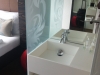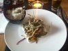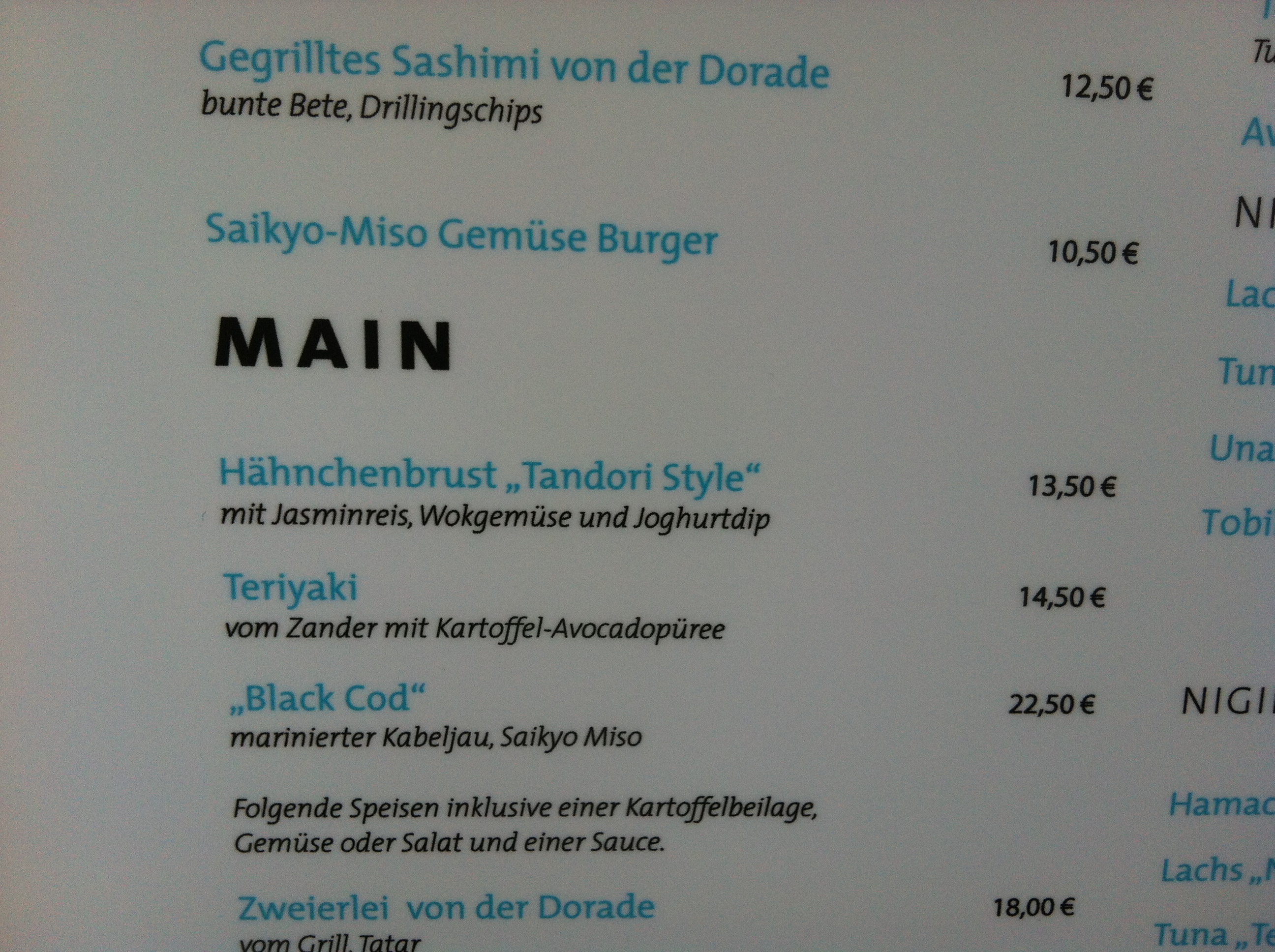 Fürs Abendessen hatte ich mir die vergangenen Tage schon was besonderes überlegt. Natürlich musste es, wie der ganze Trip hier her, auch was einzigartiges bzw. besonderes sein, eben etwas, was bei uns zu Hause nicht so einfach möglich ist. Tja und wenn man schon die Tage sich mit Steffen Henssler abgibt und beschäftigt, was liegt da näher, als auch mal in einem seiner beiden Restaurants vorbeizuschauen. So habe ich letzte Woche dort angerufen um einen Tisch zu reservieren. Beim einen Restaurant, dass er mit seinem Papa betreibt, war nichts zu machen. Alles ausgebucht. Aber nun ja das hatte ich ehrlich gesagt auch schon befürchtet. Nur das Problem war halt – wie sollte ich vor zwei Wochen schon einen Tisch dort reservieren, wenn ich zu dem Zeitpunkt ja nicht einmal wusste wann wir überhaupt in Hamburg sein werden. Beim zweiten Restaurant von ihm, dem ONO, hatte ich Glück und konnte noch einen der letzten Tische für Silvia und mich ergattern. Die nette Dame am Telefon meinte zwar auch zu mir, dass ich Glück hätte und früher reservieren sicherer gewesen wäre, als ich ihr aber den Grund erzählte, wieso es einfach nicht früher ging mit anrufen musste sie ein bisschen schmunzeln. Als wir heute Abend dort ankamen und ich meinen Namen sagte, wusste die nette Empfangsdame sogar noch, dass wir diejenigen wären, die die Tage bei ihrem Chef bei TGJ an den Start gehen würden. Sie war wirklich sehr sehr nett. Überhaupt waren alle Mitarbeiter dort sehr nett, wirklich aufmerksam und sehr umsorgend. Auch das Ambiente des ONO wirklich unbeschreiblich. Klein aber fein würde ich mal meinen. Wer sich gerne mal einen Eindruck davon verschaffen will sollte auf alle Fälle mal auf der Webseite vorbeischauen und auch die Speisekarten mal studieren. Einfach hier entlang. Wir haben wirklich göttlich gespeist. Es war sehr sehr gut. Speisekarte könnt ihr hier mal anschauen. Ich hatte die Hähnchenbrust „Tandori Style“ mit Jasminreis, Wokgemüse und Joghurtdip. Ein Traum! Genau das richtige für mich am heutigen Abend. Völlig ausreichende Portion und so unglaublich toll abgeschmeckte Komponenten! Lecker lecker lecker! Tja und zur absoluten Krönung durfte natürlich ein Nachtisch nicht fehlen – also hab ich mir noch ein „Schokoladenmalheur mit Vanillesoße“ bestellt. Was dahinter steckt? Ein warmes Schokoladen Küchlein mit flüssigem Schokokern in Vanillesosse! Ein Traum!!!