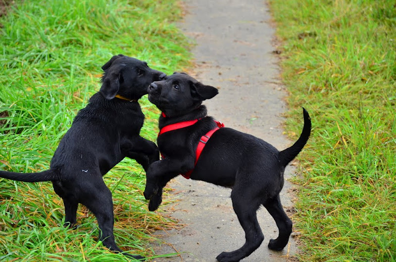Hätte ich nicht eine blau gestochene Armbeuge von der MRT Untersuchung, keine kopierten Befundunterlagen von meinem neuen Rentenantrag, keine Fotos von den zig Spaziergängen von Beau und mir die Woche, hätte ich das Gefühl, dass ich irgendwie noch gar am Ende der Woche schon angekommen wäre, sondern jetzt erst noch unmittelbar davor stehen würde. Aber nun ja mal einiges der Reihe nach. Beau verhält sich im Büro wenn ich arbeiten muss mittlerweile wirklich sehr gut und toll. Das hat sich relativ schnell und gut eingespielt und das freut mich natürlich wirklich sehr. In der Welpenschule lief es letzten Dienstag nicht ganz so gut. Irgendwie hat mein junger Mann noch Schwierigkeiten wenn er auf einige andere jungen Hunde trifft und er nicht direkt mit denen toben kann, sondern sich in deren Anwesenheit auch noch konzentrieren soll. Die Leinenführigkeit etc. lies er so gar nicht mit sich trainieren. Wenn wir beide alleine unterwegs sind dann klappt das immer wunderbar, aber in der Welpenschule irgendwie noch nicht. Aber nun ja, er ist ja jetzt gerade erst einmal 3 1/2 Monate alt und halt immer noch ein Kind. Und da kann ich nicht erwarten, dass er alles perfekt beherrscht und kann. Dann wäre etwas wirklich falsch! Und mal ehrlich die Herausforderung wäre dann auch nicht gegeben. Wobei ich muss sagen, er macht vieles wirklich schon sehr sehr toll. Sitz, Platz, Bleib, Hier etc. führt er (naja sagen wir mal in 98%) wirklich schön und zuverlässig aus. Er genießt die Spaziergänge die wir machen immer sehr und wir haben sehr viel Spaß und verbinden das tägliche Training immer wieder mit tollen neuen Gegenden die es zu erkunden gilt. Auch gestern haben wir uns wieder mit ein paar seiner Geschwistern und deren Besitzern getroffen. Ich finde es toll, dass wir das jetzt regelmäßig machen. Die Hunde haben immer Spaß miteinander rum zu toben und wir Erwachsene haben guten Erfahrungsaustausch, können ein bisschen Plauschen und in der Gruppe mit den Welpen üben. Also für Beau ist das toll. Da er ja als „Einzelhund“ bei mir aufwächst tut im das sichtlich gut sich mal mit Gleichaltrigen und Gleichgesinnten zu treffen. Natürlich ist das Ganze an sich zusätzlicher Aufwand für mich, da es jedes Mal ne Stunde Fahrt hin und dann wieder ne Stunde Fahrt zurück ist. Aber wenn ich ehrlich bin möchte ich das so häufig wie möglich immer mitmachen und das Angebot auch annehmen. Ich meine Beau muss so oder so raus. Und immer nur bei uns zu Hause laufen ohne andere Spielgefährten für ihn ist ja auch nicht soooo toll. Da soll er doch einmal die Woche den Spaß auf alle Fälle haben. Und ich finde es wie gesagt toll, dass ich die Möglichkeit habe mich mit den anderen auszutauschen und auch mit den anderen zusammen in der Gruppe mit Beau trainieren zu können. Vielleicht lernt er so auch relativ schnell jetzt dann mal auf die Ablenkung nicht so heftig zu reagieren und es wird dann dienstags in der Welpenschule auch besser. Die Hoffnung stirbt ja bekanntlich zuletzt :zwinker: