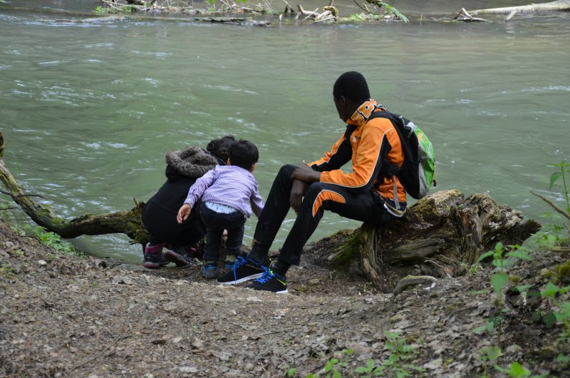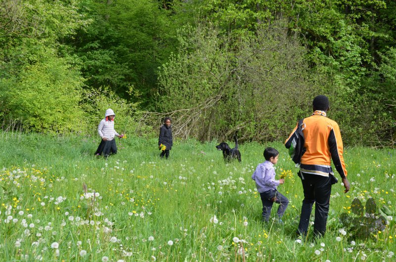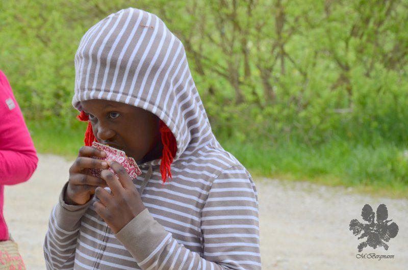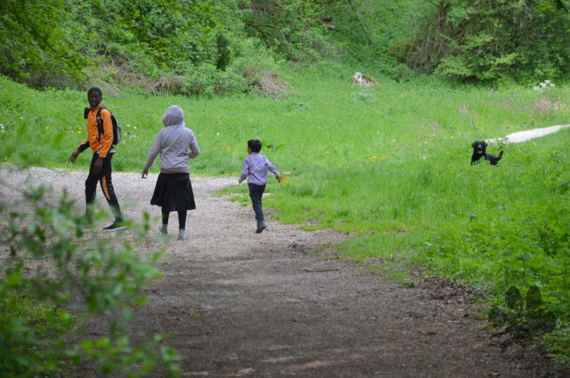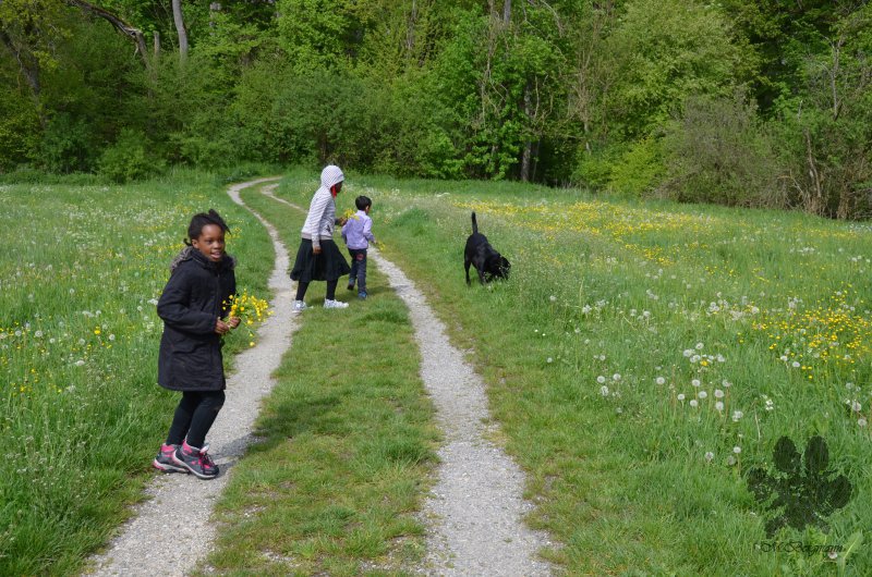 Heute war wieder Besuchs- und Therapiehundetag bei den Flüchtlingskindern. Da manche von ihnen mir mal nebenbei gesagt hatten, dass sie noch nie im Wald gewesen wären, haben Beau und ich heute mit vier unserer Flüchtlingskinder die wir betreuen, einen kleinen Ausflug in den Wald gemacht. Eine weitere ehrenamtliche Mitarbeiterin aus der Gemeinschaftsunterkunft war so freundlich und hat uns begleitet.