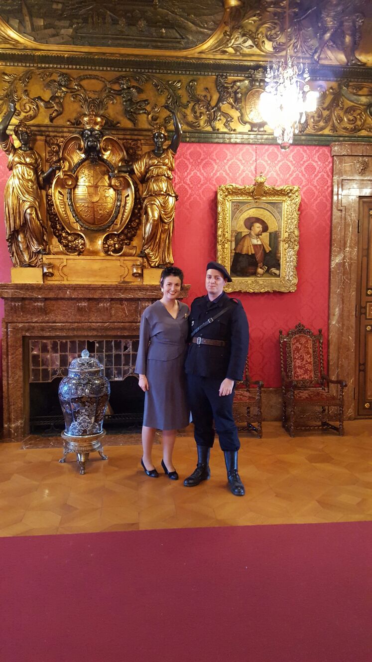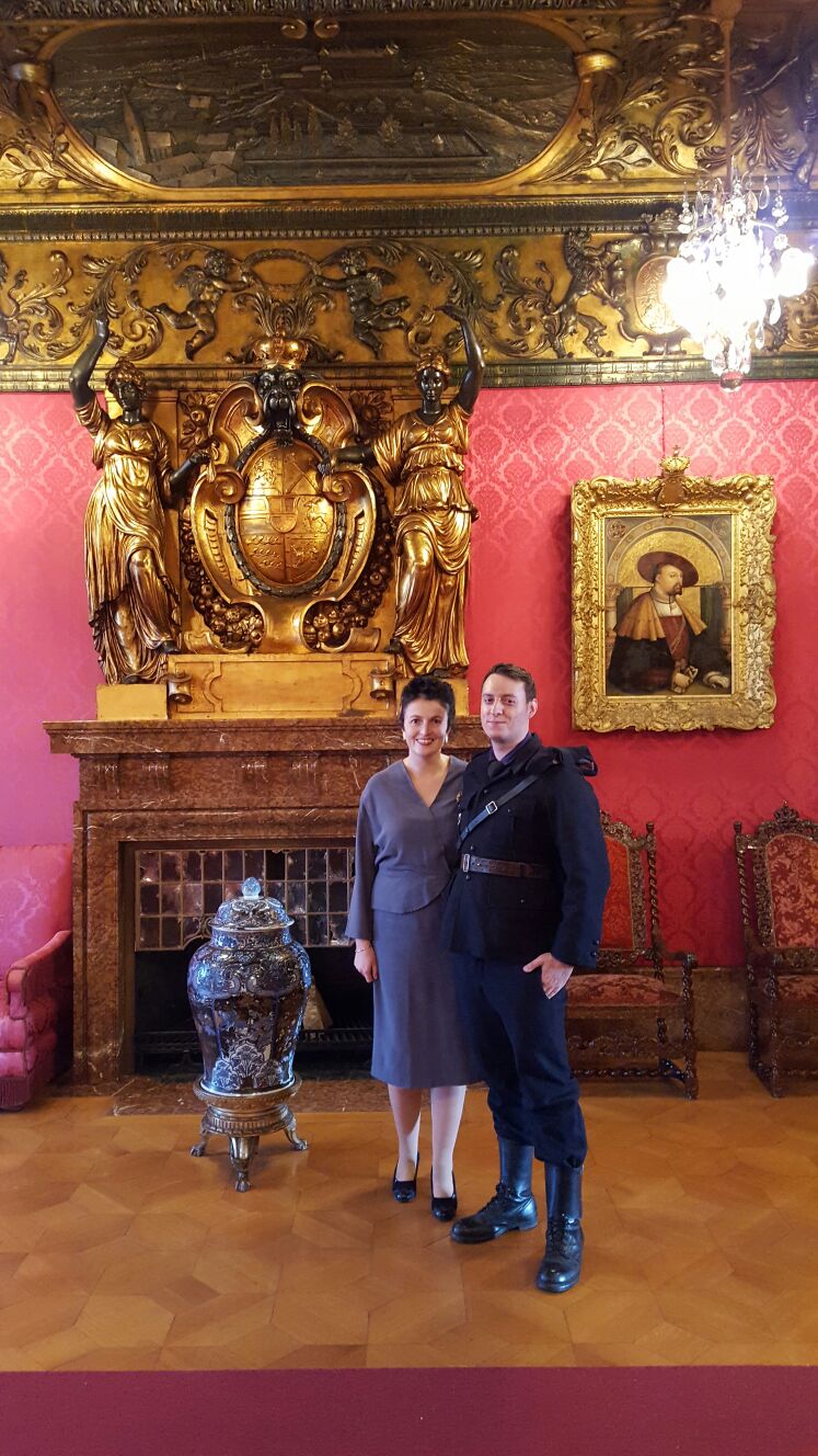 Ich hatte die Ehre unter anderem mit fünf sehr bekannten, internationalen Schauspielern aus Frankreich (Julie Debazac, Christophe Odent, Pierre Hancisse, Thomas Chabrol und Bernard Blancan) als Madame Lisette de Brinon einen französischen Dokumentarfilm über die Vichy Regierung während des zweiten Weltkrieges hier auf dem Schloss Sigmaringen zu drehen bzw. dort mitwirken zu dürfen. Die Zeitreise war leider nach vier Tagen zu Ende und das Jahr 2016 hat mich somit wieder. Es hat so viel Spass gemacht mit den Schauspielern zu drehen, sie waren alle unglaublich freundlich und zuvorkommend und es war toll mit ihnen ins Jahr 1944/1945 zu reisen. Unglaublich wie schnell man sich in die damalige Situation versetzt fühlt und wirklich darin lebt! Auch die ganze Kulisse im Schloss, die Requisiten aus der damaligen Zeit, etc. haben ein Stück Schlossgeschichte hautnah spürbar gemacht. Absolut tolle Menschen die ich kennenlernen durfte und vor allen Dingen eine tolle Erfahrung, die man nicht jeden Tag machen kann!