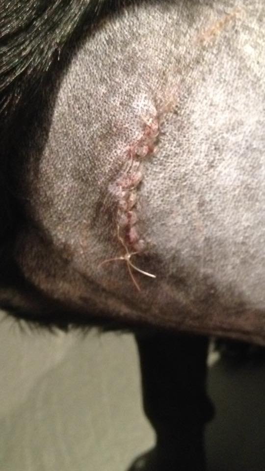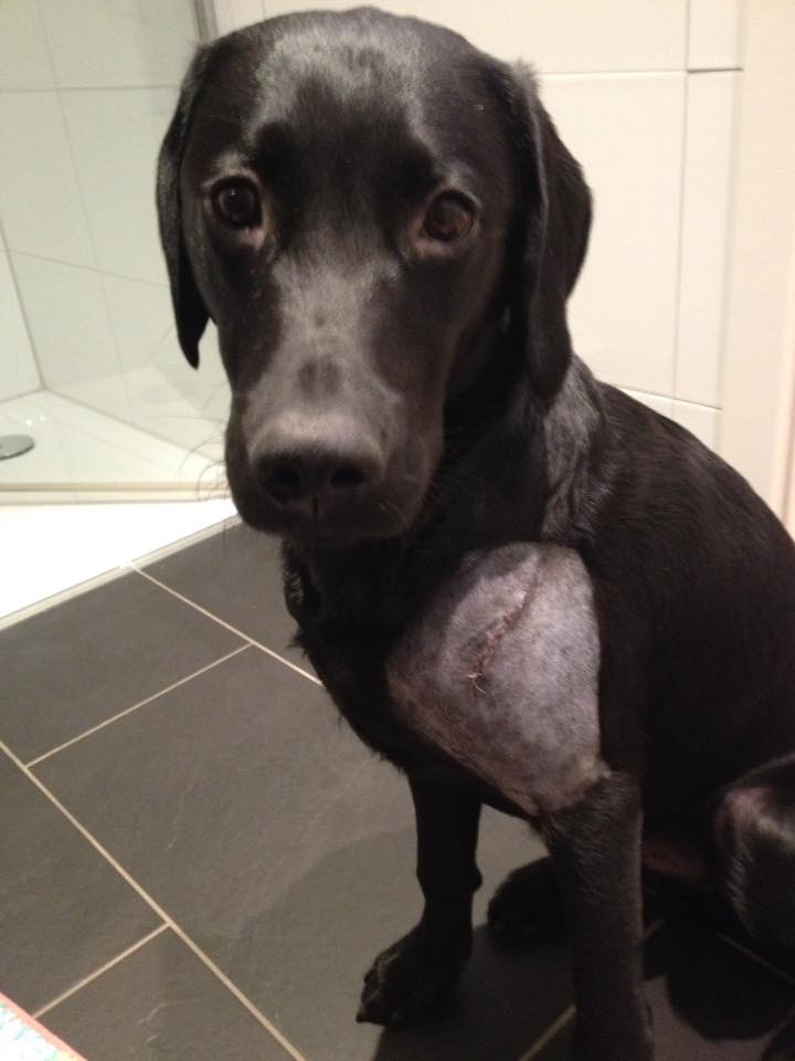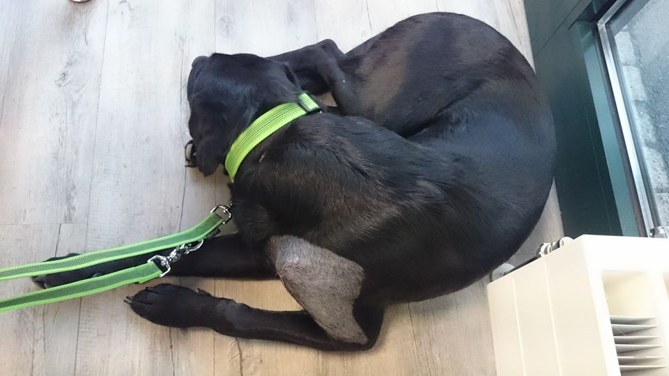 Eine weitere nicht sehr angenehme Überraschung, die sich Anfang letzter Woche zugetragen hat ist, dass Elvis operiert wurde. In meinem letzten Beitrag hatte ich ja bereits erwähnt, dass er humpelte. Da dies aber nicht besser wurde trotz Schmerzmitteln und anderen Medikamenten, ebenso auch Ruhigstellung usw. habe ich dann nochmal alles komplett durchröntgen lassen und letzten endes letzte Woche Montag ein CT machen lassen. Auf dem CT konnte man dann sehen, dass Elvis ein Stück Knorpel aus seinem linken Schultergelenk abgesplittert war und er wurde deshalb direkt operiert. Das Stück Knorpel wurde entfernt, dort wo es abgebrochen ist wurde alles gesäubert und behandelt und nun braucht alles sehr viel Zeit um wieder heil zu werden. Der Knorpel muss sich wieder neu bilden, bzw. nachwachsen und so lange darf Elvis nur an der kurzen Leine gehen, nicht wirklich Spazieren gehen, kein Rennen, kein Toben, nichts.