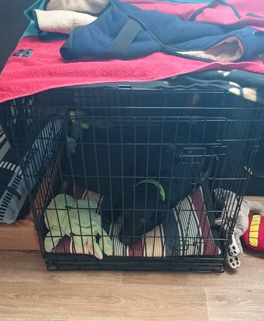 Auf Grund seines Unzufrieden seins hat Elvis mittlerweile auch beide seiner Stoffkennel zerlegt und sich daraus befreit so lange ich mit Beau mal alleine Laufen war. Nun hat er zwei Metall Kennel und es ist quasi ausbruchsicher und er kann nicht raus und in der Wohnung herumtoben/herumflitzen so lange ich mit Beau beim laufen bin. Begeisterung sieht anders aus, aber wenn Elvis wieder vollständig genesen will dann ist diese Vorsichtsmaßnahme einfach unumgänglich.