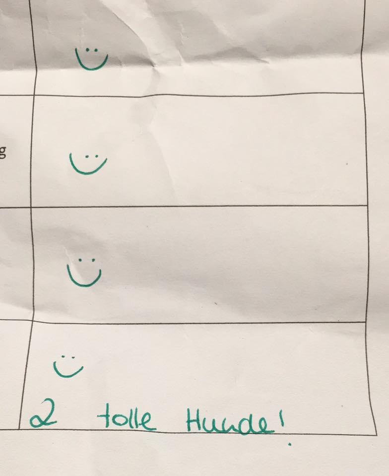So was ist immer wieder schön zu hören und auch zu lesen, wenn Außenstehende, die mich und meine Hunde zuvor noch nicht gesehen haben, sehen, dass meine Hunde gerne und freudig arbeiten.