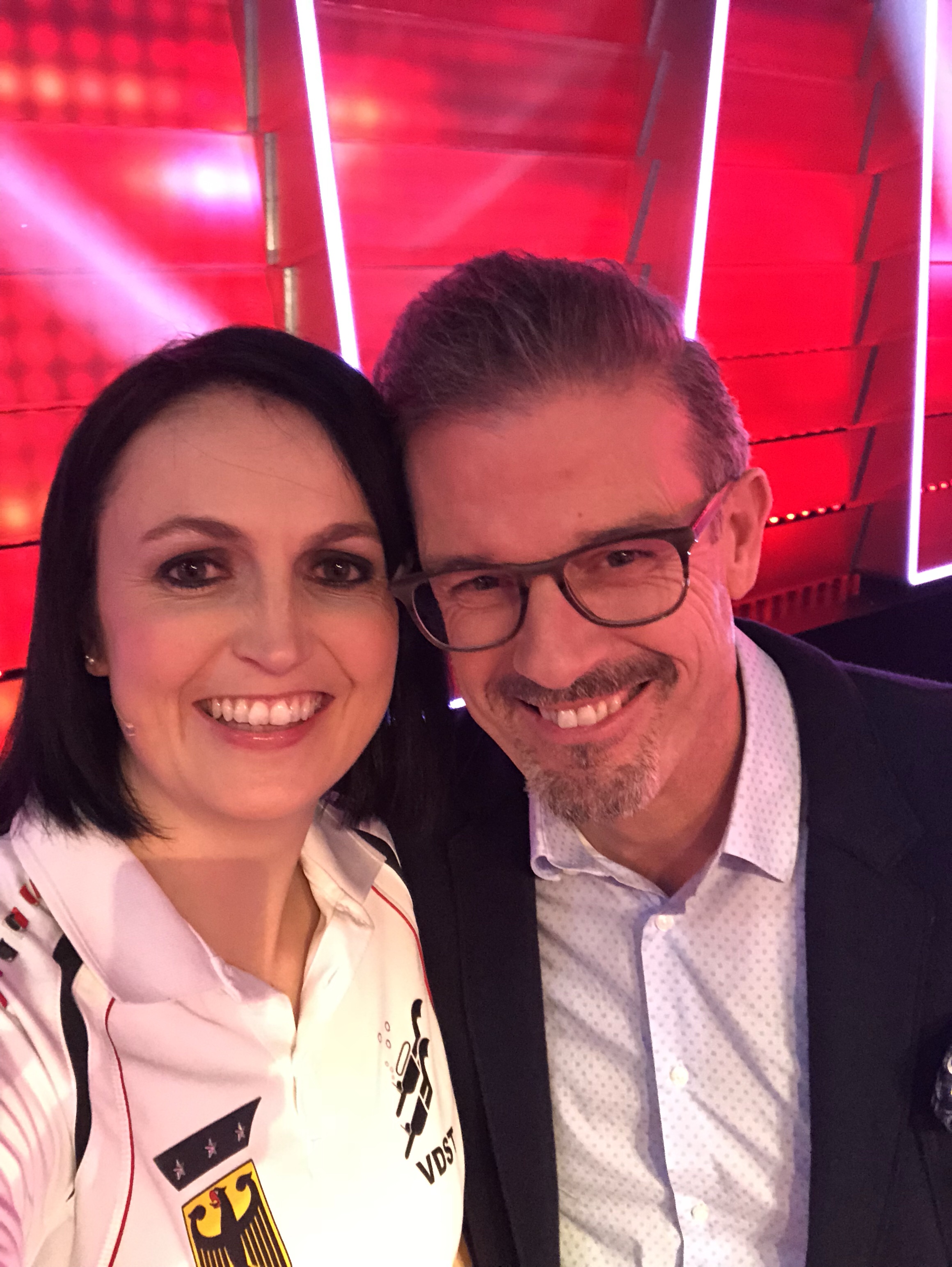 Bei den ganzen Unternehmungen und Aktivitäten am nächsten Tag konnte ich auch noch einen Plausch mit Mike Krüger und Michael Antwerpes abhalten. Zwei Menschen, die ich für ihr fernsehtechnisches Können und ihre Unterhaltung in demselbigen wirklich sehr schätze. Michael Antwerpes gerade für seine doch immer herrlich erfrischende, sachliche und kompetente Moderation im ganzen Biathlon Zirkus und Mike Krüger mochte ich schon immer auf Grund seines Humors und seinen lustigen Filmen auch gerade z.B. mit Thomas Gottschalk. ![]()