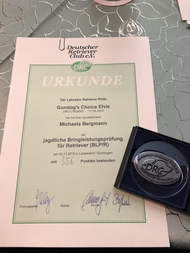 Vielleicht fällt auch nun einfach mal so langsam der unbewusste körperliche und auch die geistige Anspannung der letzten Wochen ab was die Sache mit den Hundetrainings und Prüfungen betrifft. Wie in meinem letzten Blogbeitrag erwähnt sollte der diesjährige Prüfungs- und Saisonabschluss von Elvis und mir am letzten Samstag (03.11.2018) in Lackendorf bei Dunningen (nähe Rottweil) stattfinden. Dort wurde die diesjährige jagdliche Bringleistungsprüfung (BLP/R) organisiert. Elvis zeigte bereits im letzten Jahr bei der Jagdlichen Jugendprüfung (JP/R) sehr gute und ausdauernde jagdliche Leistungen und Passion für diese Arbeit, so dass es für mich schon lange fest stand ihn auch auf diesem Gebiet, neben der Dummyarbeit, weiter auszubilden und zu fördern.