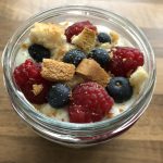 Gestern war natürlich mal wieder Waffelmontag hier bei mir zu Hause. Es gab dieses Mal leckere Tomate/Mozzarella Waffeln mit gebratenen Champignons, Feldsalat und selbst gemachtem Tomaten Chutney. Als Nachtisch gab es frisches Beeren Joghurt Trifle mit Kokos Zwieback Crumble.
