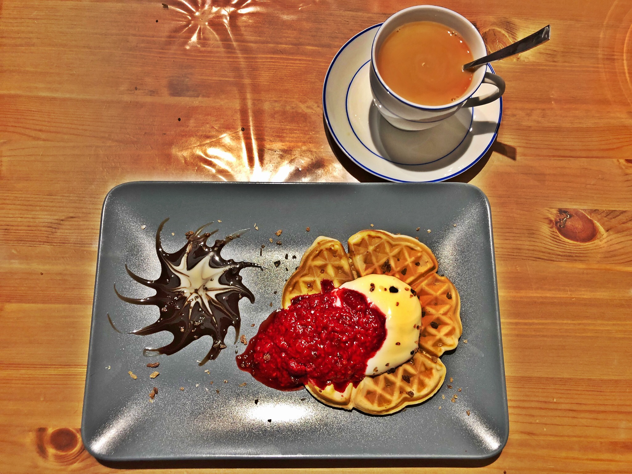 Natürlich gab es diese Woche Montag auch wieder Waffeln bei mir. Waffelmontag hat ja wirklich schon Tradition und diese Woche stand die Waffel dann auch ganz im Sinne meiner Familientradition, bzw. Familienherkunft von meinem Opa Väterlicherseits. Es gab ostfriesische Grümmel Waffeln mit frischer Quarkcreme und heissen Himbeeren. Dazu Schokososse mit einem Hauch Vanille und original ostfriesischem Schwarztee mit Kluntje und Rahm. Und so sah das Ganze dann auf dem Teller aus.