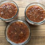Mittlerweile ist in meiner Küche wieder die Zeit des „Neukreierens“ gestartet. Jeder der mich schon ein Weilchen kennt weiß, dass ich gerne, gerade für die Waffelabende zum Beispiel, Chutneys und Salzas kreiere und einkoche. Da mein Rhabarber im Garten inzwischen wieder in voller Pracht wächst und gedeiht, habe ich angefangen dieses Mal mit Rhabarber und auch mit Erdbeeren neue, nicht ganz so alltägliche Sachen zu schaffen.