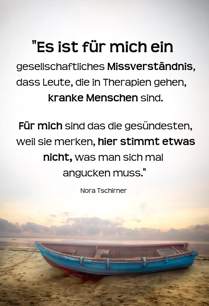 Nein ich habe aktuell leider immer noch nicht wieder mal ein ruhigeres, geordneteres Leben. Heute hatte ich ein langes Gespräch mit meinem Arzt und auch mit der Gesprächstherapeutin, die ich immer wieder zu Rate ziehe. Warum ich das mache? – Ich weiß, bei vielen ist es mehr oder minder verschrien wenn man so was macht oder man wird ziemlich schnell als deprimiert, krank oder sonstiges abgestempelt wenn man so was macht. Nora Tschirner hat mal eine, wie ich finde, wirklich tolle Aussage getroffen.