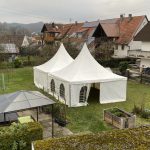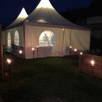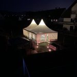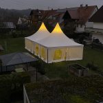 Die Wochen und Tage vergingen, ich konnte erfreulicher Weise Ende September dann auch die Zusage für ein Zelt bekommen und die ersten Anmeldungen für den Abend trudelten ein. Richie ist seit April diesen Jahres mit seinem Wohnmobil ständig auf Tour. Nachdem ich mal ein Bild von dem Wohnmobil gesehen hatte beschloss ich ihm für das Wochenende den Luxus eines super ausgestatteten Hotelzimmers zu schenken und buchte ihn so für zwei Nächte inkl. Frühstück im Hotel „Beim Rinderwirt“ hier bei mir in Sigmaringendorf ein. Noch ein paar letzte Dinge bestellt und organisiert und schon war dann auch Montag letzter Woche. Beim Waffelabend wurden noch ein paar finalen Organisationsdinge, gerade auch hinsichtlich des anstehenden Zeltaufbaus, besprochen, Dienstag kam dann noch mein neuer Gips dazwischen und Mittwoch morgen begannen die Aufbauarbeiten zum dritten Soundgarden. Meine Vision nahm quasi Gestalt an und zwei Pagoden, die zusammen ein Zelt in Größe von mehr 6 x 12 Meter nahm Gestalt an und bildete die „Heimat“ für den anstehenden Samstag. Beleuchtungen, eine selbst gebaute Bühne und die Sitzbänke gaben erstmalig einen Anhaltspunkt wie das Ganze wohl wirklich aussehen würde.