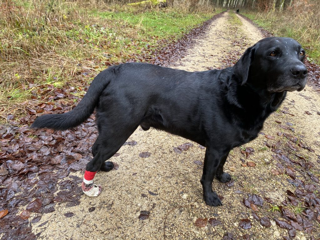 In Sachen Gesundheit ist auch noch nicht wieder alles auf dem Damm. Meine Hand ist nach wie vor nicht gut und geschient. Beau hat nach seiner ganzen Spuckerei sich vor fünf Tagen am Hinterlauf den Pfotenballen aufgerissen und das nicht zu knapp. Also gab es, gerade bei dem Matsche und Ekelwetter der letzten Tage vor jedem Spaziergang einen Pfotenverband. Aber mein armer alter Mann hat das Gott sei Dank mit viel Verständnis und Fassung getragen und über sich ergehen lassen, dass Frauchen ständig den Fuß eingepackt hat
