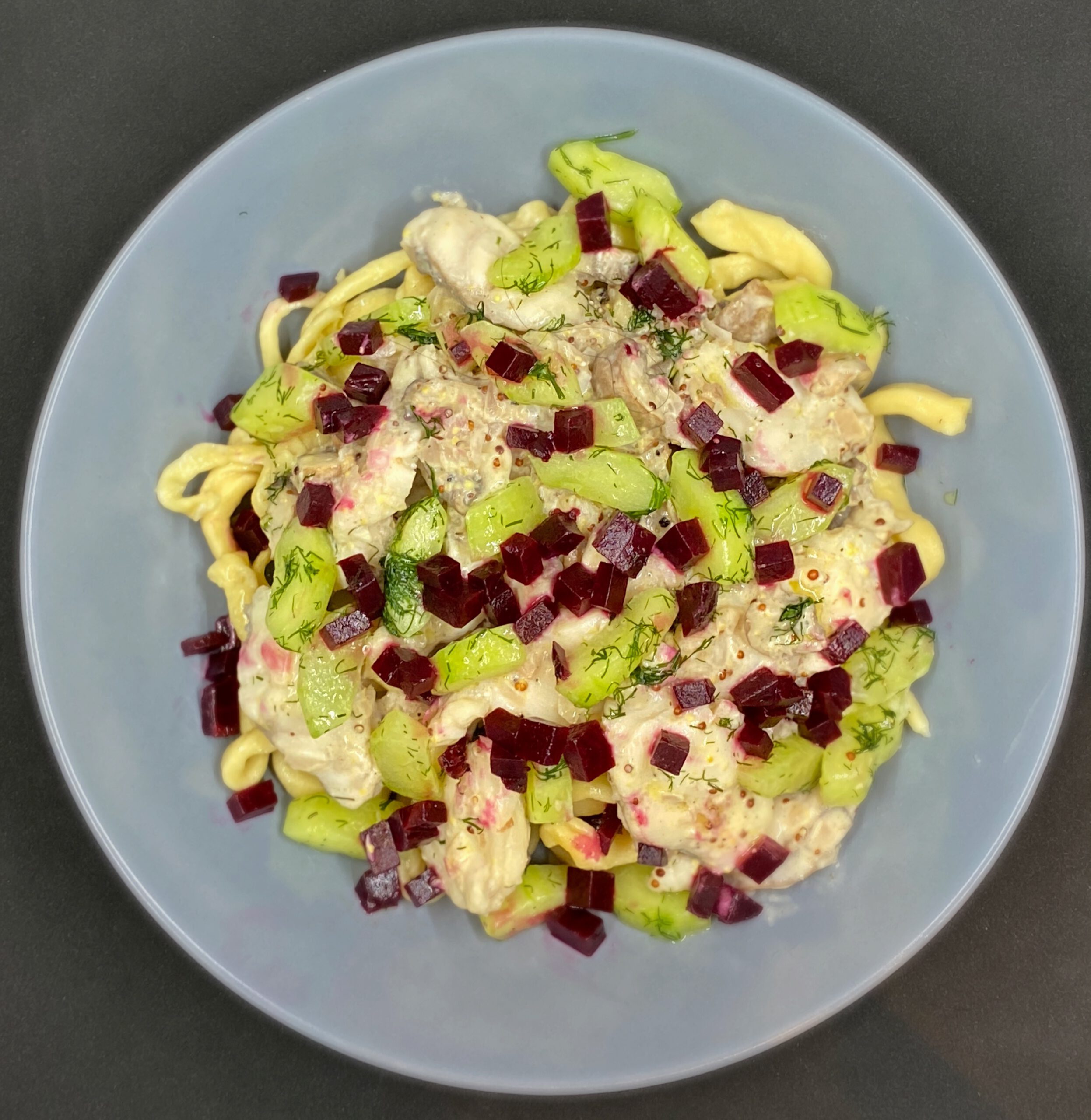 Heraus kam dabei unter anderem Fischfiletpfanne Stroganoff, Brokkoli Tatar und ein Wildschwein Burger. Teilweise recht außergewöhnliche Kombinationen, farbliche Highlights und nicht ganz Alltägliches. Es zogen auch noch in meinem Haushalt drei Nudelvorsätze für meine Kitchen Aid Maschine ein und ich habe beschlossen das meiste an Nudeln künftig immer selbst zu machen. Schmeckt einfach besser und ist schon ein eigenes kleines Highlight dann irgendwie.