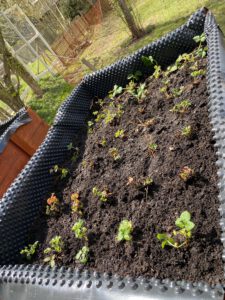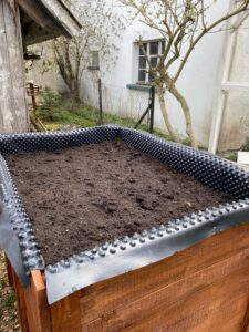 Das zweite der neuen Hochbeete habe ich auch gefüllt und angepflanzt. Und wie ihr seht……