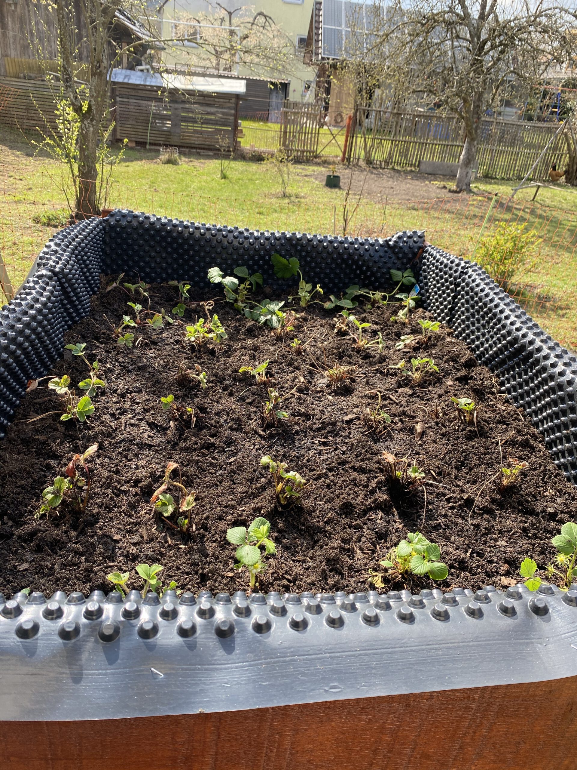 Ich liebe ja Erdbeeren. Habe vier Pflanzen noch mit eingesetzt, die ich mir gekauft hatte. Weiße Erdbeeren mit Ananas Geschmack. Skuril oder? Wir starten also mal den Versuch ob die a) was werden und b) dann auch schmecken 🙂 Das Experiment ist also quasi letzte Woche gestartet.